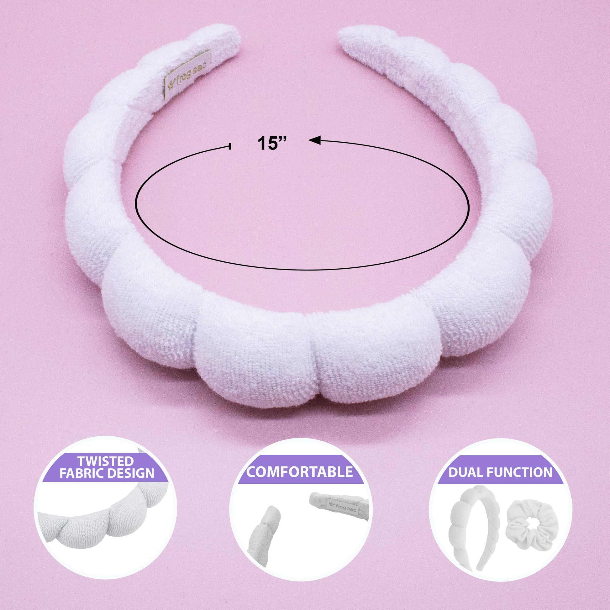 Puffy Terry Cloth Padded Spa Headband with Scrunchies - Multiple Colors