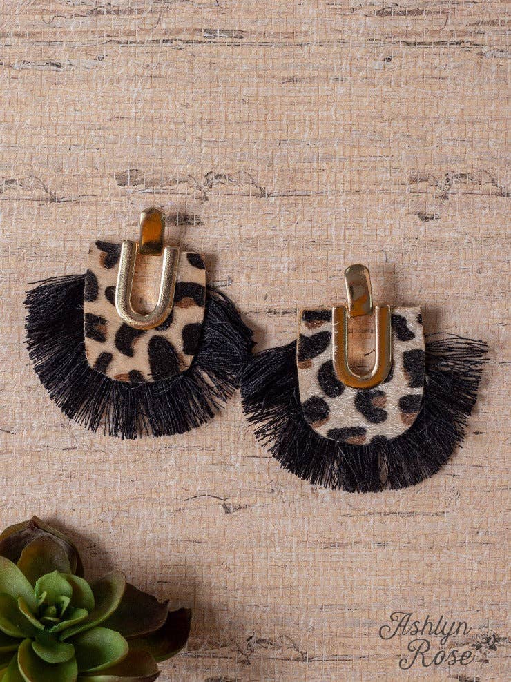She's Fabulous Black Fringe Stud Leopard Earrings